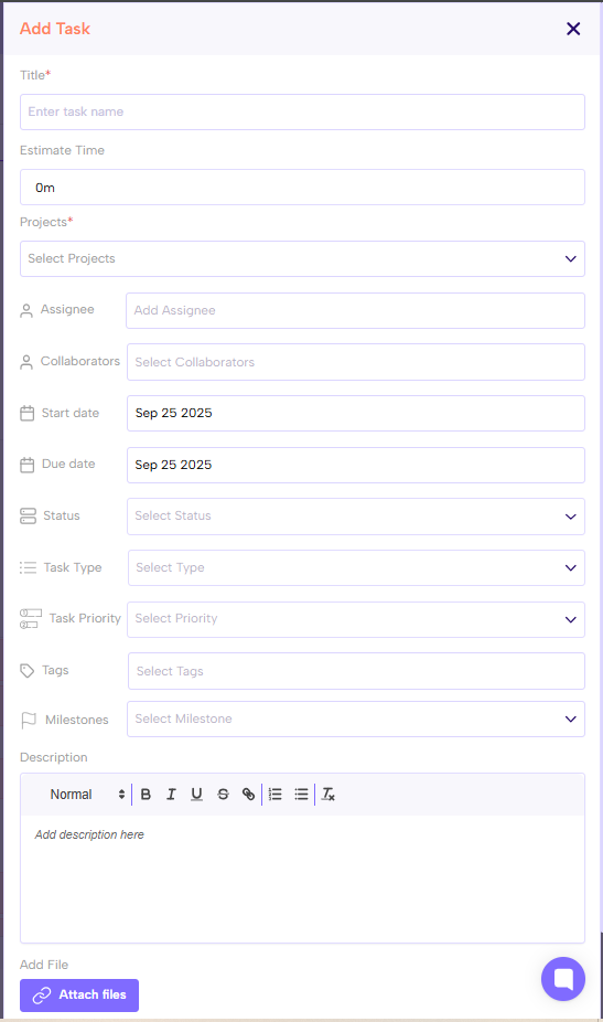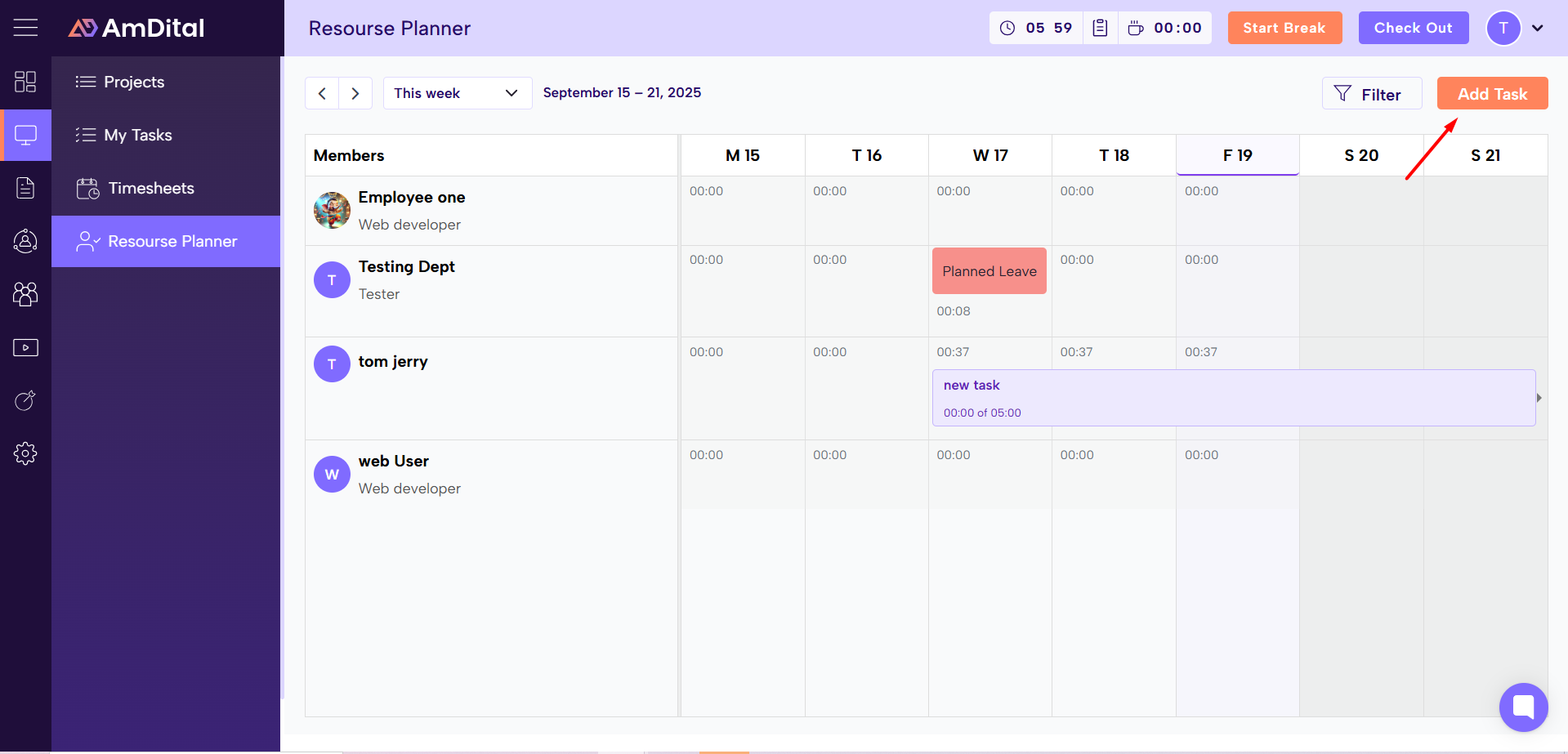 The task will be created successfully and visible on the selected employee for the selected dates.