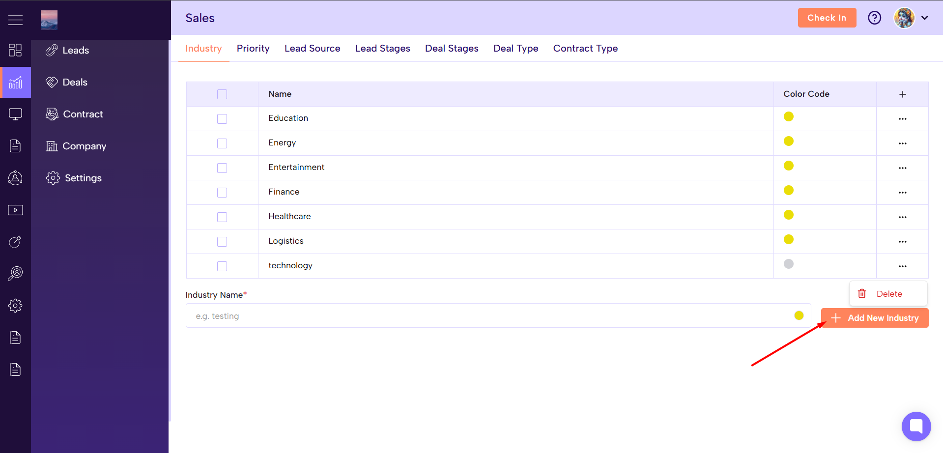 Use the Edit or Delete icons next to any existing industry.