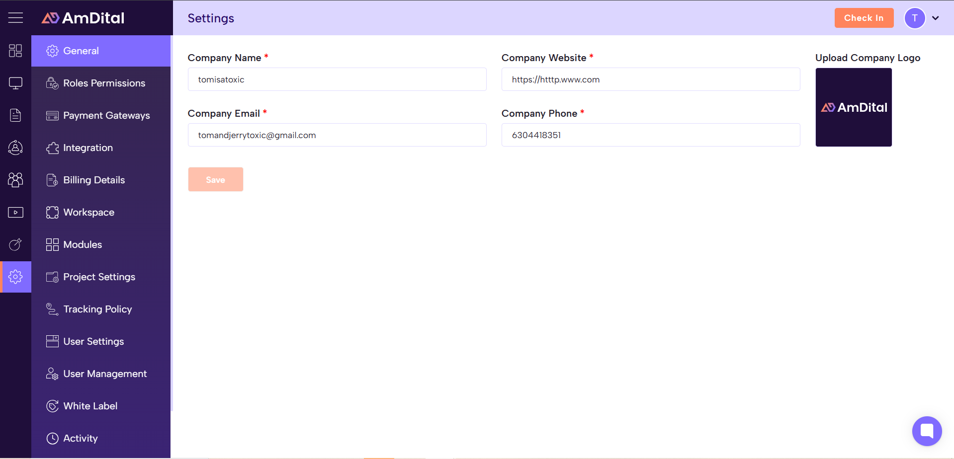 Navigate to General / Workspace / Company settings: