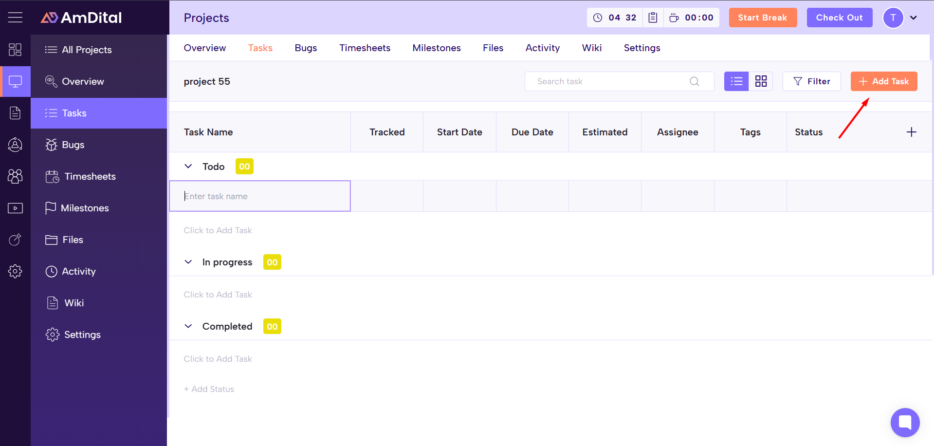 After filling out the necessary fields, click on Add Task. The task should now appear under the project’s task list, or in your own tasks list or dashboard.